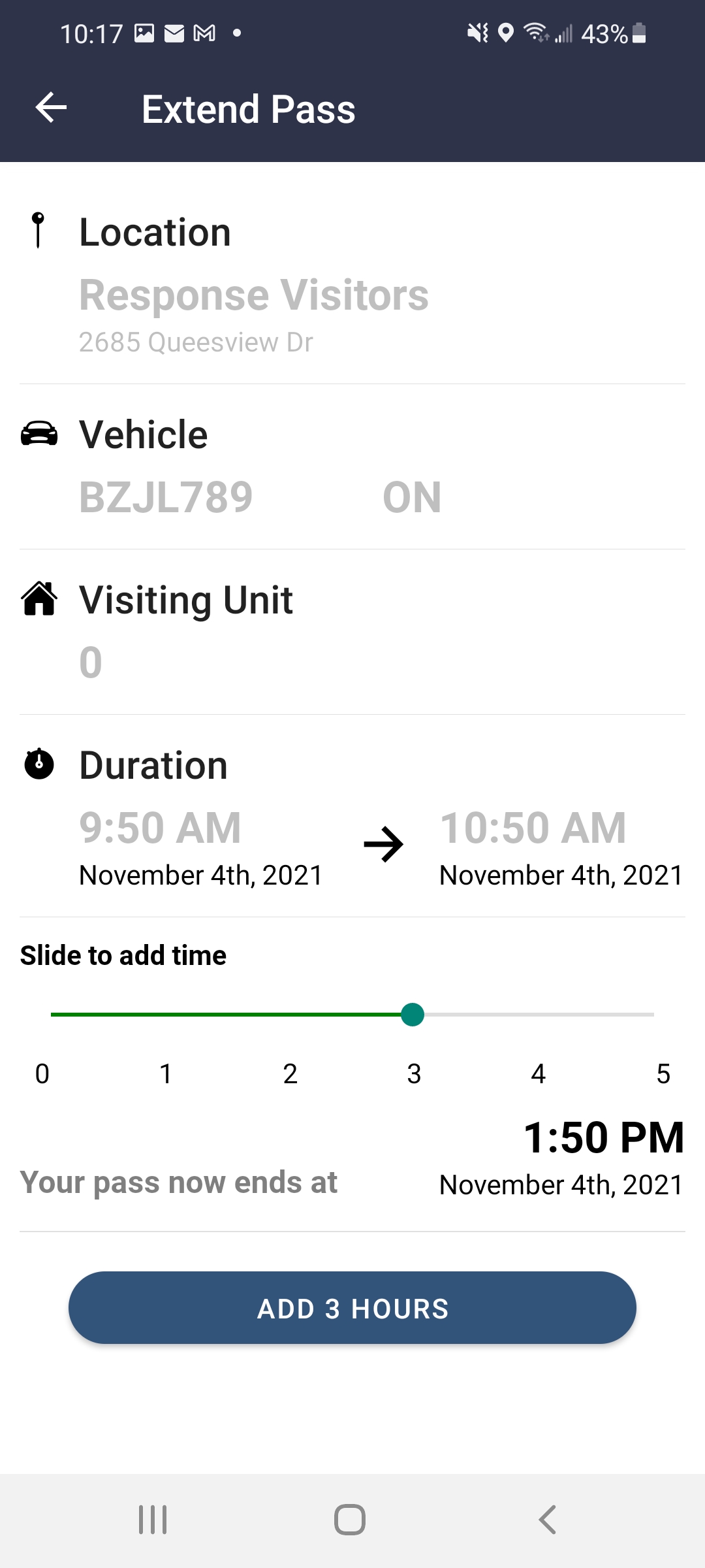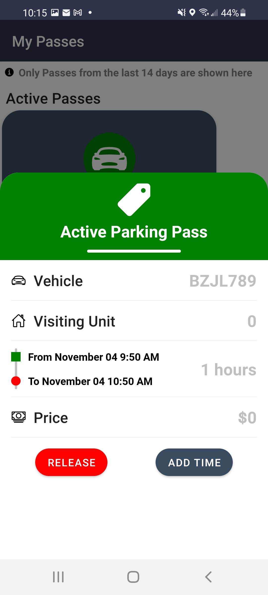 Select "Add time" and select the duration for which you would like to extend the pass