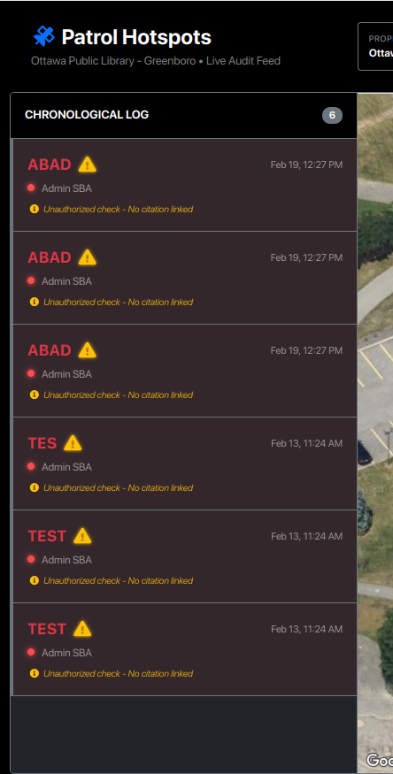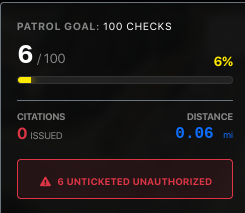 The Action: This is a "Safety Net" feature. It highlights missed enforcement opportunities or areas where guards may have been interrupted before completing a ticket.